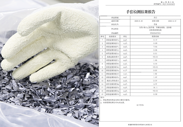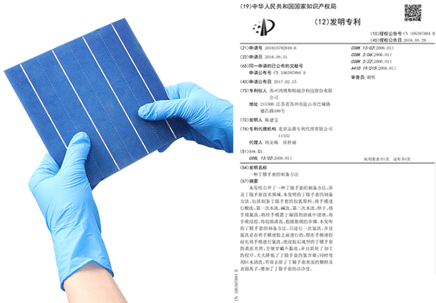 手套經(jīng)過特殊工藝處理,通過驗證將手套放置氮氣柜當中80H,手套接觸產(chǎn)品無任何氧化情況,經(jīng)權威機構檢測氯元素及硫元素完全符合接觸電池片標準,且不會在電池片上面留下任何指印。